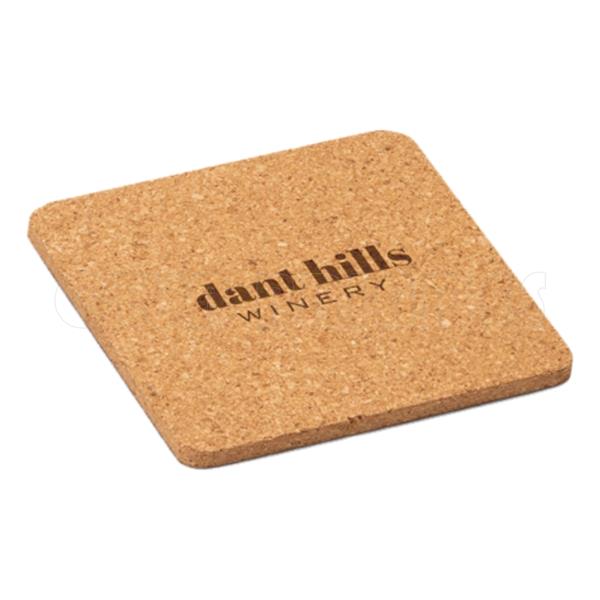 Porta copos em cortiça em formato quadrado com cantos redondos. Certificação EU Food Grade. A cor e o resultado da impressão nos materiais naturais podem variar entre produtos. Gravação da logomarca a laser já incluso.