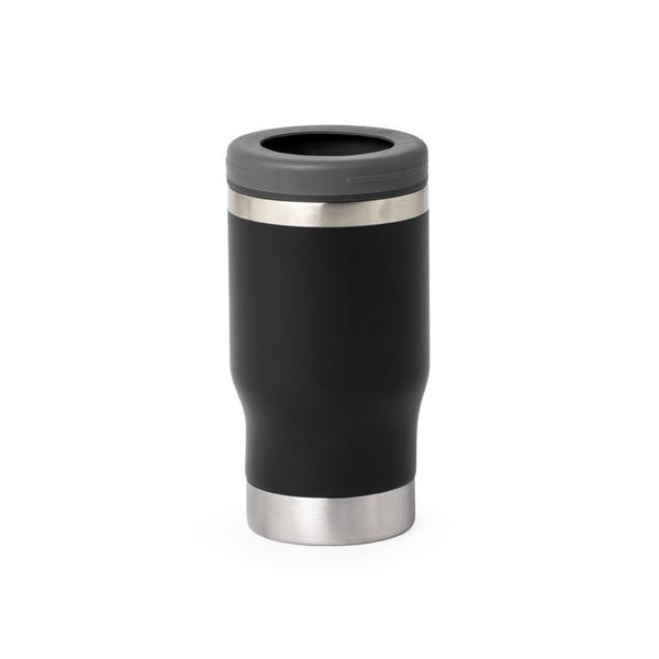Copo térmico multiuso com parede dupla em inox, capacidade de 380ml. Pode ser utilizado como copo, porta long neck ou porta lata. Detalhe em inox na parte superior e ainda contém abridor de garrafa na parte inferior do copo. Gravação da logomarca a laser já incluso.