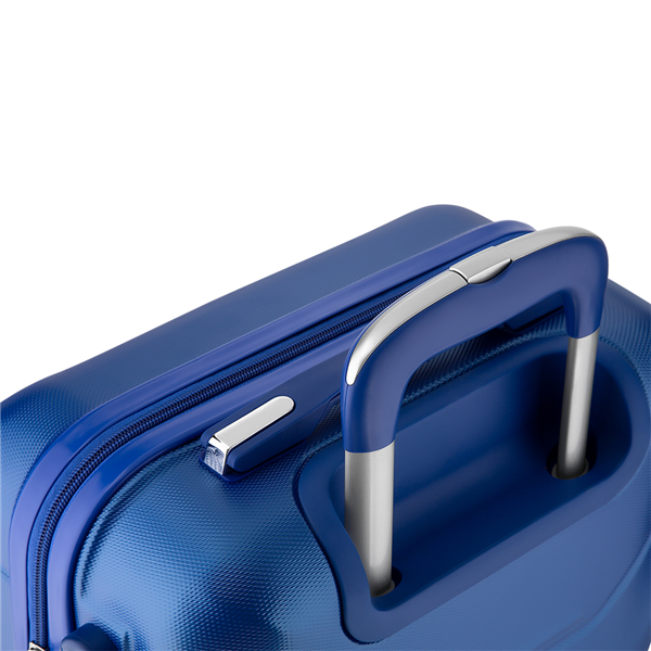 Mala viagem pequena em ABS (Estireno de acrilonitrilo e butadieno) com interior em poliéster 210D, forro em poliéster. Alça de mão na lateral e na parte superior, sistema de carrinho de aço com 4 rodas de 360 graus. Cadeado com senha/segredo. Gravação da logomarca a laser já incluso.