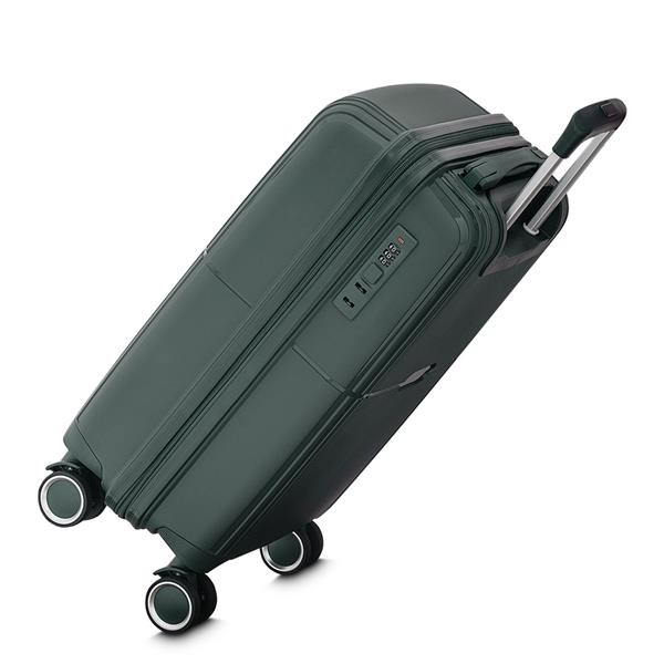 Mala viagem pequena em Polipropileno com interior em 210D. Abertura com zíper para acesso ao interior da mala e forro poliéster. Sistema de carrinho de aço com quatro rodas de 360 graus. Cadeado com senha/segredo e possui cadeado TSA. Alça de mão na parte superior. Acompanha 2 plaquinhas (7,8x2,6 cm) em inox para personalização. Gravação da logomarca a laser já incluso.