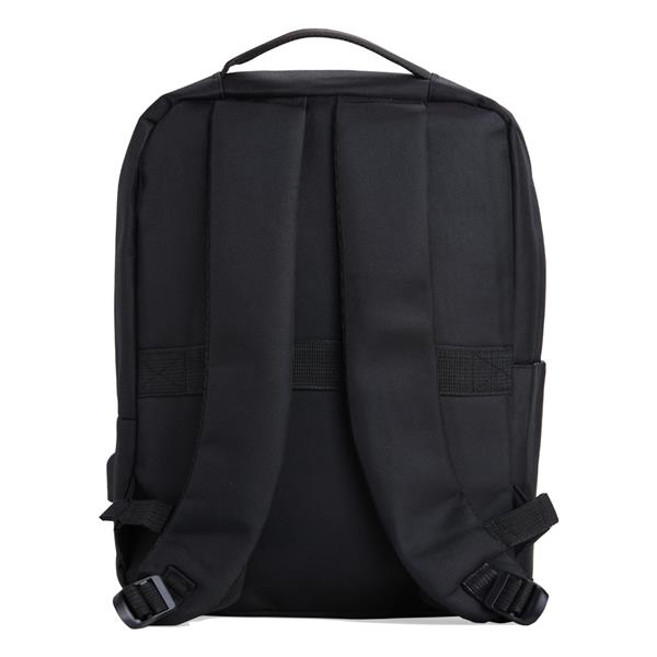 Mochila de Nylon 22 Litros com 4 compartimentos, sendo o principal com bolso para notebook 15,6. Com divisórias internas para acessórios, a mochila possui bolso lateral, suporte externo USB e alça para engate em malas de viagem. Gravação da logomarca em 1 cor já inclusa.